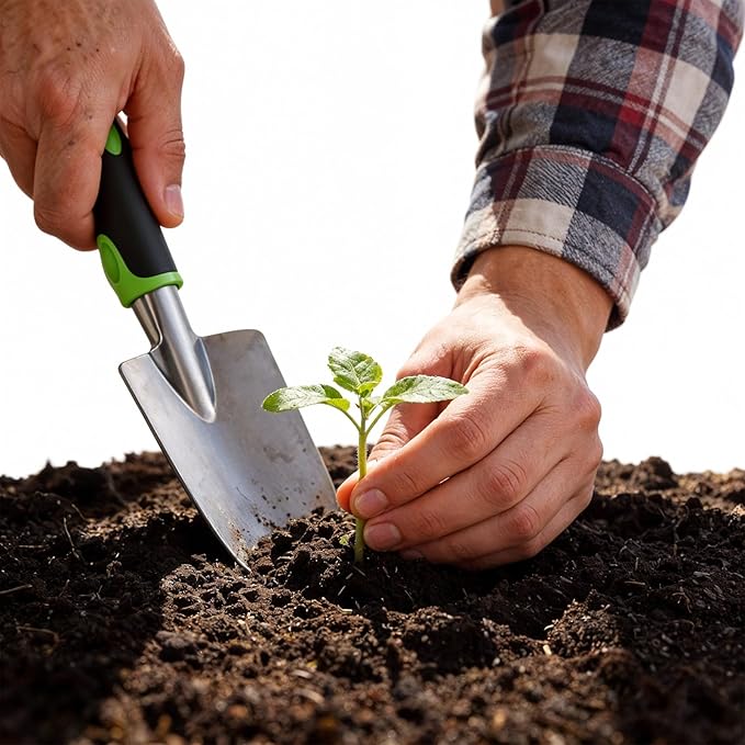 Ergonomic & User-Friendly Design: The hand shovel is designed with a comfortable, non-slip ergonomic grip to reduce hand fatigue during prolonged use. Its lightweight build (approx. 2.95 x 12 inches) and hanging hole allow for easy carrying and compact storage.
